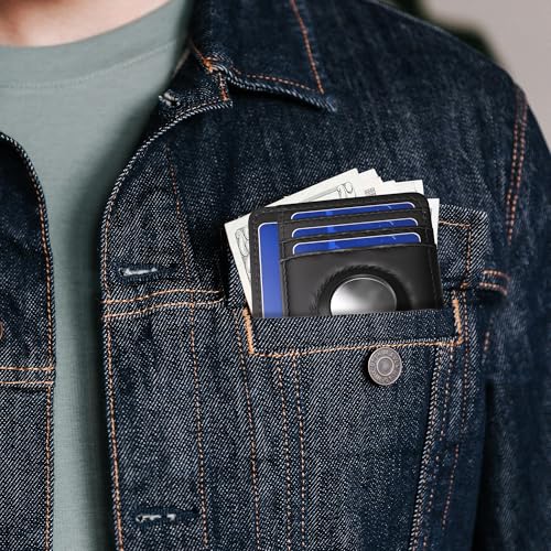 Slim Front Pocket Wallet with AirTag Holder - Minimalist Premium Genuine Leather RFID Blocking Cash and Card Wallet for Men, Compatible with AirTag,wallet. EN-K (Black) 5