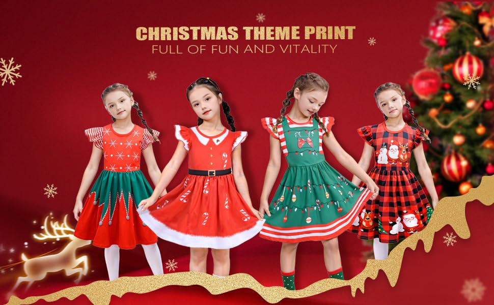 • 🎄Festive: This girls Christmas dress is designed to exude a festive vibe, featuring holiday-inspired elements such as Christmas trees, snowflakes, or reindeer patterns. It's a perfect way to embrace the holiday spirit.