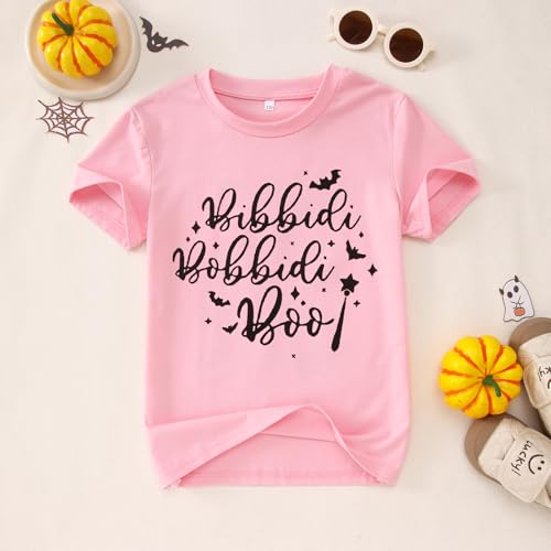 Halloween Shirts for Girls Boo Funny Letter Print T-Shirt Kids Magic Wand Graphic Spooky Season Tee Vacation Tops 4