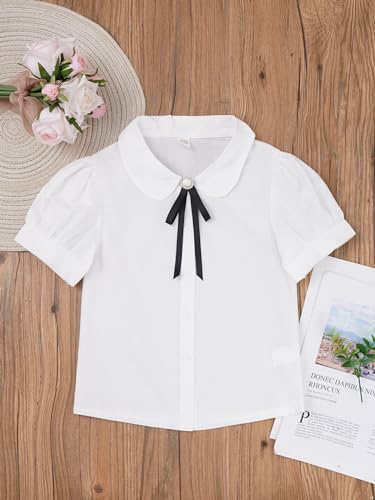 JEATHA Girls White Blouse Puff Short Sleeve Button Down Shirts Princess Bowknot School Uniform Tops 6