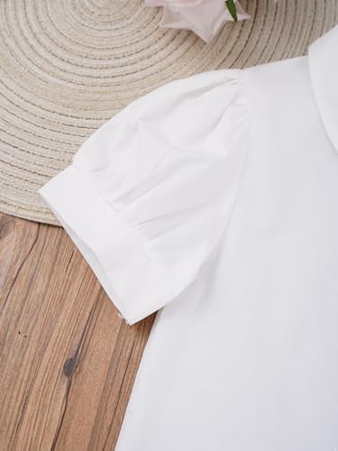 JEATHA Girls White Blouse Puff Short Sleeve Button Down Shirts Princess Bowknot School Uniform Tops 4