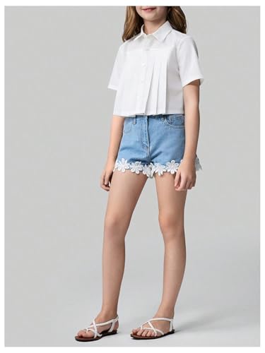 More information about SweatyRocks Girl's Button Down Blouse Collar Short Sleeve Pleated Shirt Summer Tops