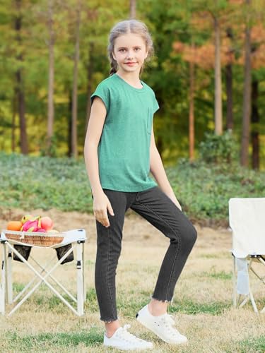 GORLYA 2 Pack Girls Cap Sleeve Summer T-Shirt Multipacks Casual Loose Basic Tee Tops with Pocket 6-14Y 6