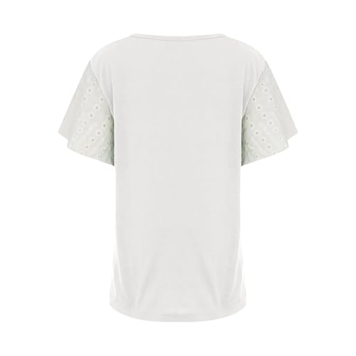 Girls Ruffle Sleeve Shirts Crewneck Eyelet Tee Tops Toddler Casual Cute Blouse Teens Solid Summer Tshirts for Kids 2