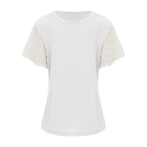 Girls Ruffle Sleeve Shirts Crewneck Eyelet Tee Tops Toddler Casual Cute Blouse Teens Solid Summer Tshirts for Kids 6