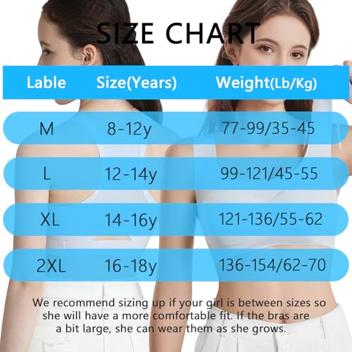 • Wide Straps & Elastic: Special wireless designed for puberty girls, won't limit their development. The bottom of the bras are elastic enough to put on and take off, and won't bring any strangulation. Wide shoulder straps can reduce the pressure on the shoulders and avoid slipping off.