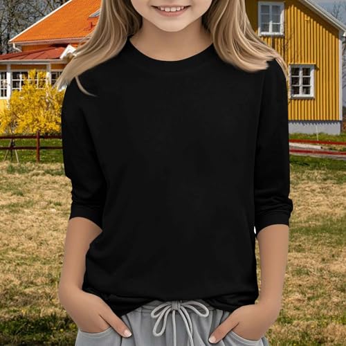 HOT ! Teen Girls Floral 3/4 Length Sleeve Top Summer Crewneck Casual Athletic Blouse for Kids Soft (Black #7, 12-13 Years)