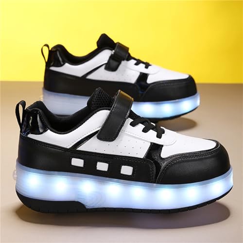 Kids Roller Shoes Boy Girl Sneakers, Outdoor Sport Shoes Sneakers with 2 Wheels Unisex Skateboarding Shoe Retractable Skating Shoes for Children's Park Walking Sports 2
