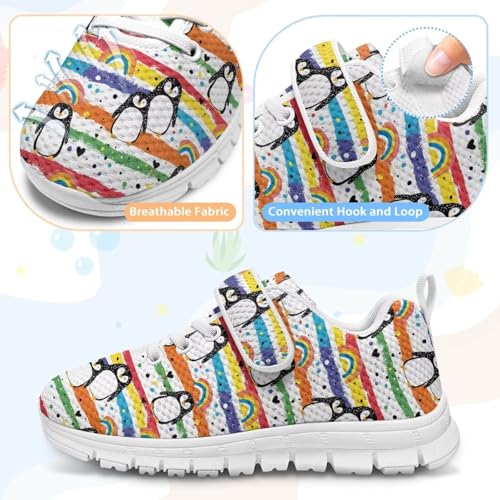 Boys Girls Sneakers Kids Breathable Lightweight Strap Tennis Athletic Running Shoes Penguin Rainbow Pattern 6