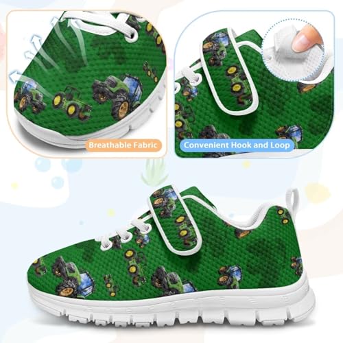 Little Kid Shoes Boys Girls Sneakers Tennis Running Lightweight Breathable Shoes Tractor Pattern(White Sole) 4