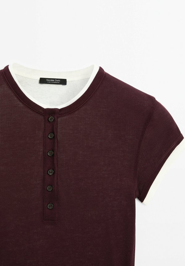 DOUBLE-LAYER HENLEY - Basic T-shirt - mottled bordeaux 4