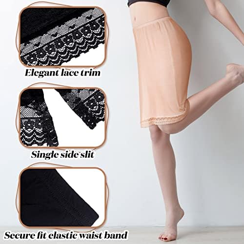 Lasnten 3 Pcs Women's Half Slips for Under Dresses Lace Trim Underskirt Above Knee Skirt Adjustable Petticoat 4