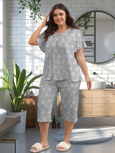 Heat Move Plus Size Pajamas Sets for Women 2 Piece Soft Sleepwear Short Sleeve Top and Capri Pant Pjs Loungewear with Pockets 6