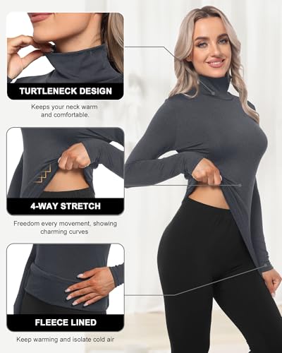 CL convallaria Turtleneck Thermal Underwear Shirts Women Fleece Lined Base Layer Tops Long Sleeve 2 4 Pack 3