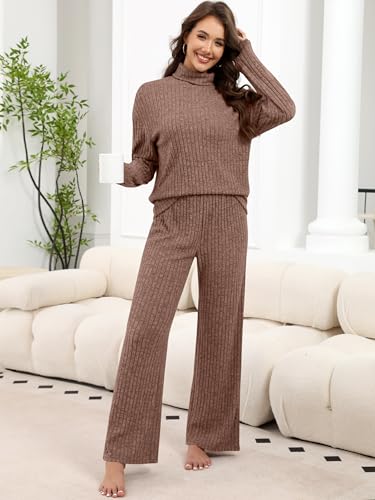 ANRABESS 2 Piece Lounge Sets for Women Turtleneck Pajama Knit Long Sleeve Tops Pants Matching Pj Set Casual 2025 Fall Clothes 1