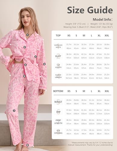 • 🛌 COMFORTABLE FIT & ELASTIC WAISTBAND: Designed with a relaxed cut and misses cotton elastic waistband pajamas style, this pjs offers flexible movement and long-lasting comfort.Two piece pajama set featuring classic sleepwear style, notch collar and left chest pocket, Delicated piping details make this womens pajama set stylish and elegant.