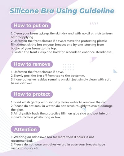 • Easy to Clean and Reuse: Simply wet the adhesive surface with warm water and neutral detergent, rinse off the foam, and let it air dry. Once dry, attach the plastic film back to the bra to maintain its stickiness