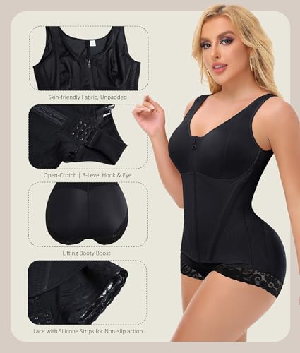 • 【DOUBLE COMPRESSION FOR HOURGLASS CURVES】Designed with dual-power compression, this full body faja for women defines your curves effortlessly. The inner layer's 3-level adjustable hook & eye closure conforms to your body shape, providing customized compression that effectively flattens and smoothes your abdomen. The outer layer features an easy-zip design that delivers full compression from waist to abdomen, for a perfectly sculpted silhouette. Perfect for post-surgery, postpartum, or everyday.