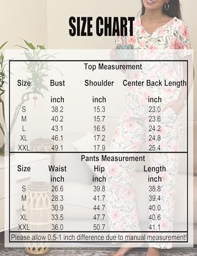 Ekouaer 2 Piece Womens Pajamas V Neck Short Sleeve Top and Long Pants Pjs Print Lounge Set Sleepwear 1