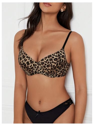 HOT ! OYOANGLE Women's Leopard Print V Neck Spaghetti Strap Bras Underwire Push Up Bralettes
