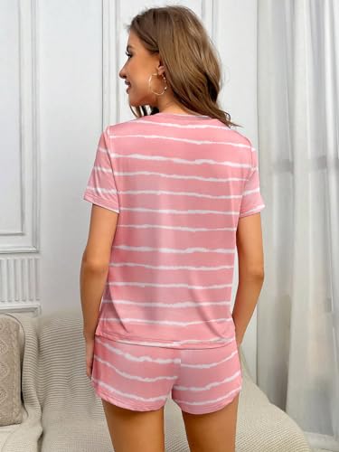 Ekouaer 2 Pack Pajamas Short Sleeve Top with Shorts Sets Comfy Pjs Lounge Sets Sleepwear for Women 3