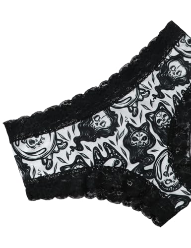 More information about 6pcs Gothic Chic Low Rise Bikinis Contrast Lace, Skull & Eyeballs & Stars Print, Women Comfortable Hipster Panties