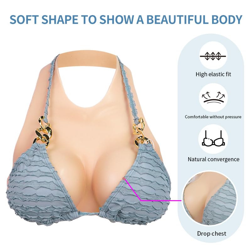 • 【Hollow Back Design】: Our silicone breast plate adopts a hollow back design, which is more breathable than other styles. It will not be stuffy even if you wear it all day in summer. The silicone fake boobs adopts a 1:1 human body ratio, looks realistic and natural, feels soft, fits the skin, has real nipples and areolas, and the ultra-high elasticity allows the breast prosthesis to stretch up to 200%, allowing you to wear and move freely.