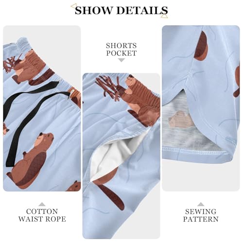 Women's Pajama Shorts Soft Pj Bottoms Cartoon Beavers Sleep Lounge Shorts with Drawstring Pockets 1
