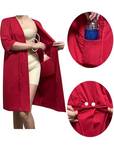 HOT ! Post Surgery Pajama Mastectomy Robe with Internal Drain Pockets ,Recovery Robe Post Mastectomy for Post Operative