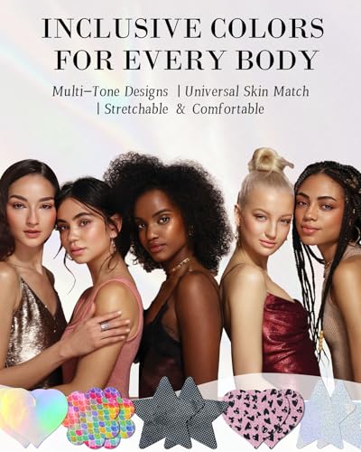 • 🎨15-PAIR PASTIES MULTIPACK - 15 unique nipple pasties in holographic/glitter/satin textures. Zero repeats! Ideal for raves, pool parties, or costumes. Share with friends or mix-n-match outfits.