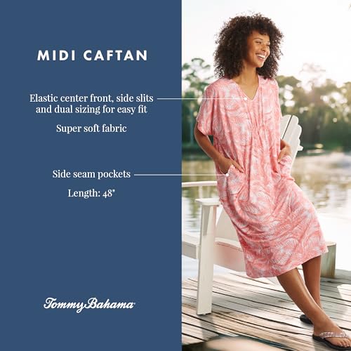 HOT ! Tommy Bahama - Women's Midi Caftan, Dolman Sleeve Stretch Jersey Caftan with Pockets for Sleep or Lounge