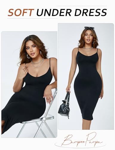 • 【HIGH-QUALITY FABRIC】BampooPanpa shapewear long slip dress is crafted from a carefully selected blend of 90% Polyamide and 10% Elastane, offering high elasticity, breathability, and a soft feel. Fabric of the black slip dress is comfortable against the skin, resistant to deformation, and suitable for year-round wear.