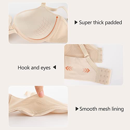 Women's Push Up Bra Add 2 Cup Sizes Super Deep V Plunge Padded Bra Comfort Support Underwire Back Smoothing Bras 2