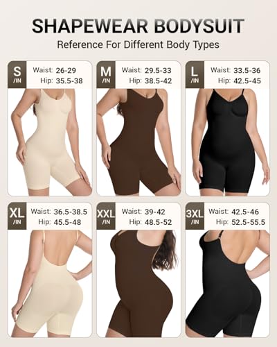 • SIZE GUIDE:Our shapewear bodysuits for women comes in 6 sizes:S/M/L/XL/2XL/3XL.Please measure your bust,waist and hips according to the size chart to choose the right size for you. If you are in-between sizes or have a large bust, we suggest you choose one size up.