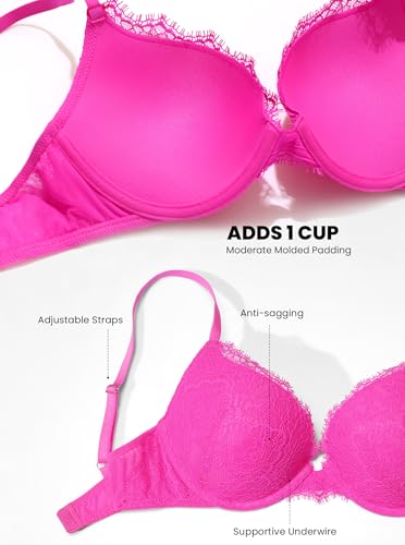 More information about DOBREVA Women's Push Up Bra Eyelash Lace Sexy Cleavage Underwire Support Plunge Bras