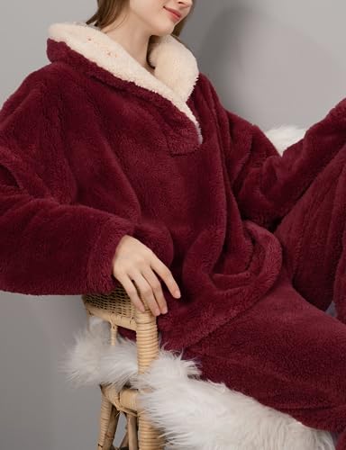• Occasion: The warm and special plush coat is very suitable for women, and the comfortable and warm 2-piece pajamas are the perfect choice for casual clothes, daily life, pajamas, holidays, home clothes, bedrooms, Christmas and New Year.