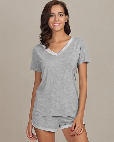 HOT ! GYS Womens Pajama Sets, Short Sleeve Soft Sleepwear Tops and Shorts Pjs, Bamboo Viscose Loungewear