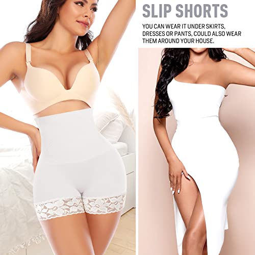 • Lace Shorts for Under Dresses: The stomach control shapewear shorts slim your thighs, give you a more streamlined look, and also prevent thigh friction and exposure. The slip shorts for under dresses are designed with lace trim, which makes your thigh look more sexy and elegant.