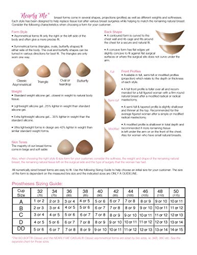 • NEARLY ME #985 Super Soft Ultra Lightweight Full Triangle Silicone Mastectomy Breast Form Available in Beige, with 12 separate sizes to choose from.