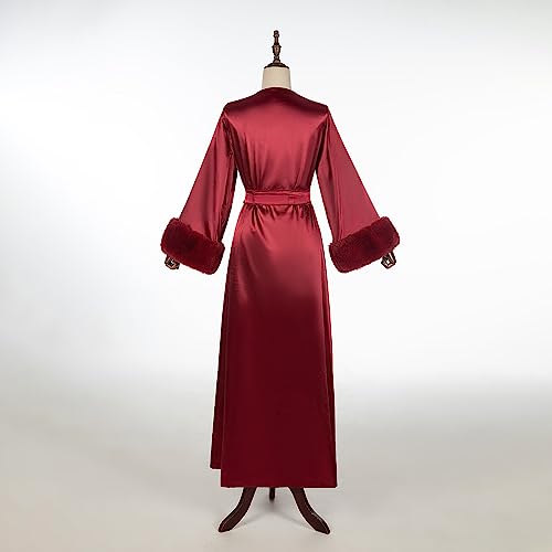 • More Puffy! More Thick! Material: Robe is Silk Satin and Feather. Sheer Long Robe with Fur, Long Sleeve Bridal Robe Kimono Nightgown, Feather Bridal Robe Wedding Scarf Maternity Robe for Photoshoot Lingerie for Women. For the reasons for the screen display, please allow a slight difference.