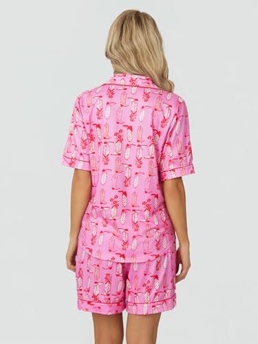 • Valentine's Love Printed Pajamas Design - Wrap up in a cozy cocoon with the silky satin pajama set for women! You will want to wake up every morning in this silky soft outfit. The elastic drawstring waist shorts are paired with a long sleeve button up blouse top in the sweetest floral hearts print.