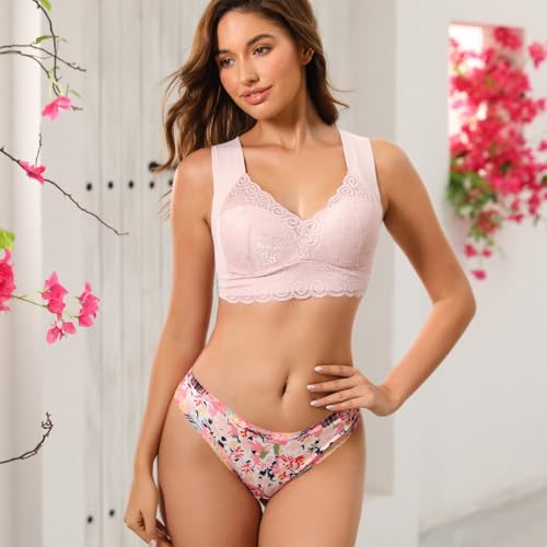 • Variety Pack: Includes 8 pink stylish women's thongs in a range of vibrant floral and heart prints with lacy trims.
