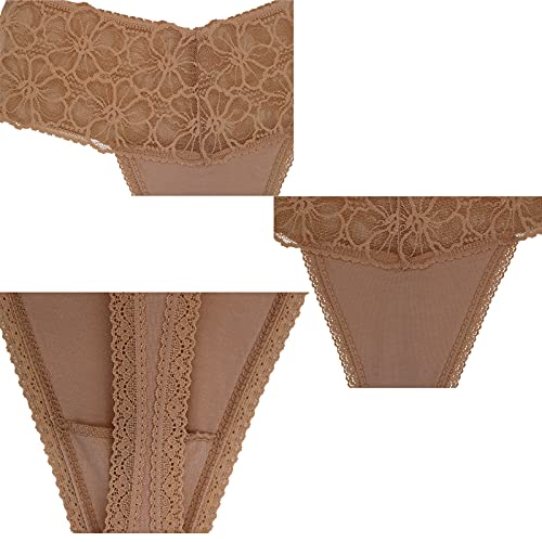 Delcroix Lace Thongs for Women - Cotton Underwear Panties Pack 5