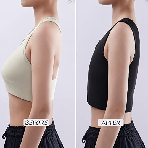 • THREE LAYERS CHEST BINDER: Front - One layer of compression fabric for a flat appearance, one layer of moderate elastic lining to hide the breasts, one layer of cotton lining for a comfortable compression feel. Back - one layer of mesh compression fabric with stretch and won't hurt your back.