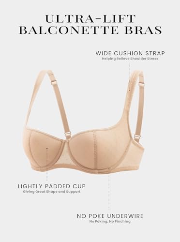 HOT ! DOBREVA Women's Balconette Bra Lightly Padded Plus Size Sexy Mesh Demi Underwire Bras Wide Cushioned Straps