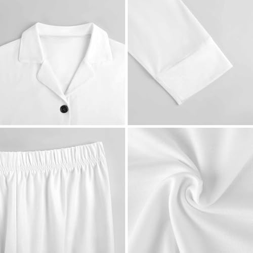 • Button Down Pajamas: Pajama set has button down design, easy to put on and take off. The pajama pants are equipped with pockets on both sides, which is convenient to put things