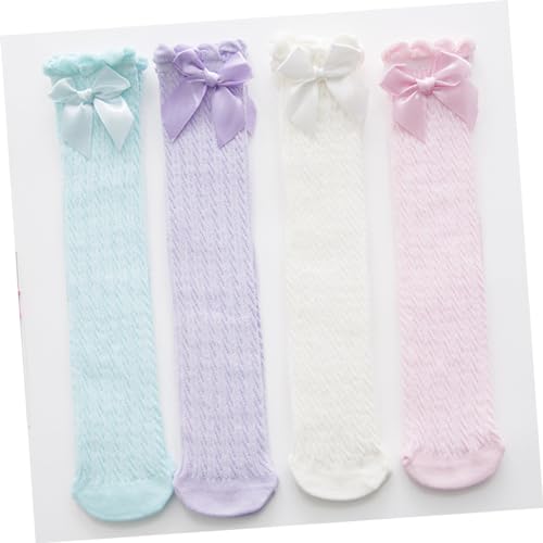 3pcs Girls Cotton Socks Big Bow Soft Lace Knee-high Socks for Toddlers for and Skirts Stylish and Comfortable Boys and Girls Hosiery 4