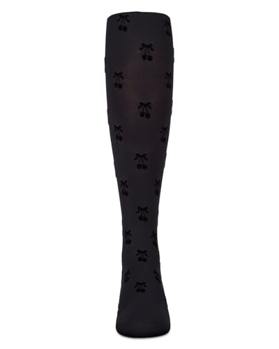 MeMoi Girls Opaque Cherry-Pattern Flocked Tights 6