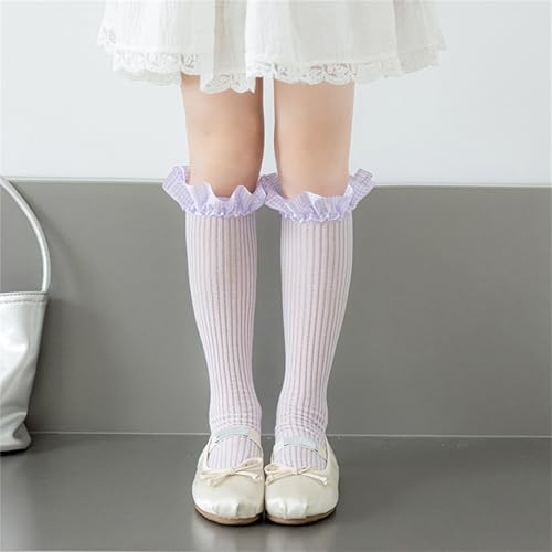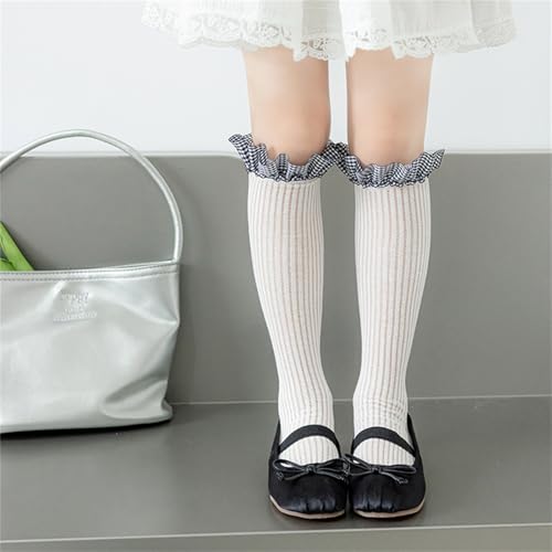 1 Pair Soft Cotton Under Knee Socks for Girls with Checkered Lace Trim Comfortable Stretchy Design Stackable Socks 7