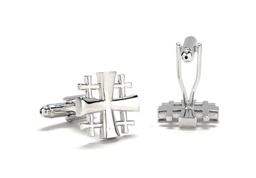 HOT ! Silver Jerusalem Cross Cufflinks – Handmade Christian Cuff Links for Men, Religious Catholic Jewelry, Pastor Wedding Gift, Holy Land Symbol